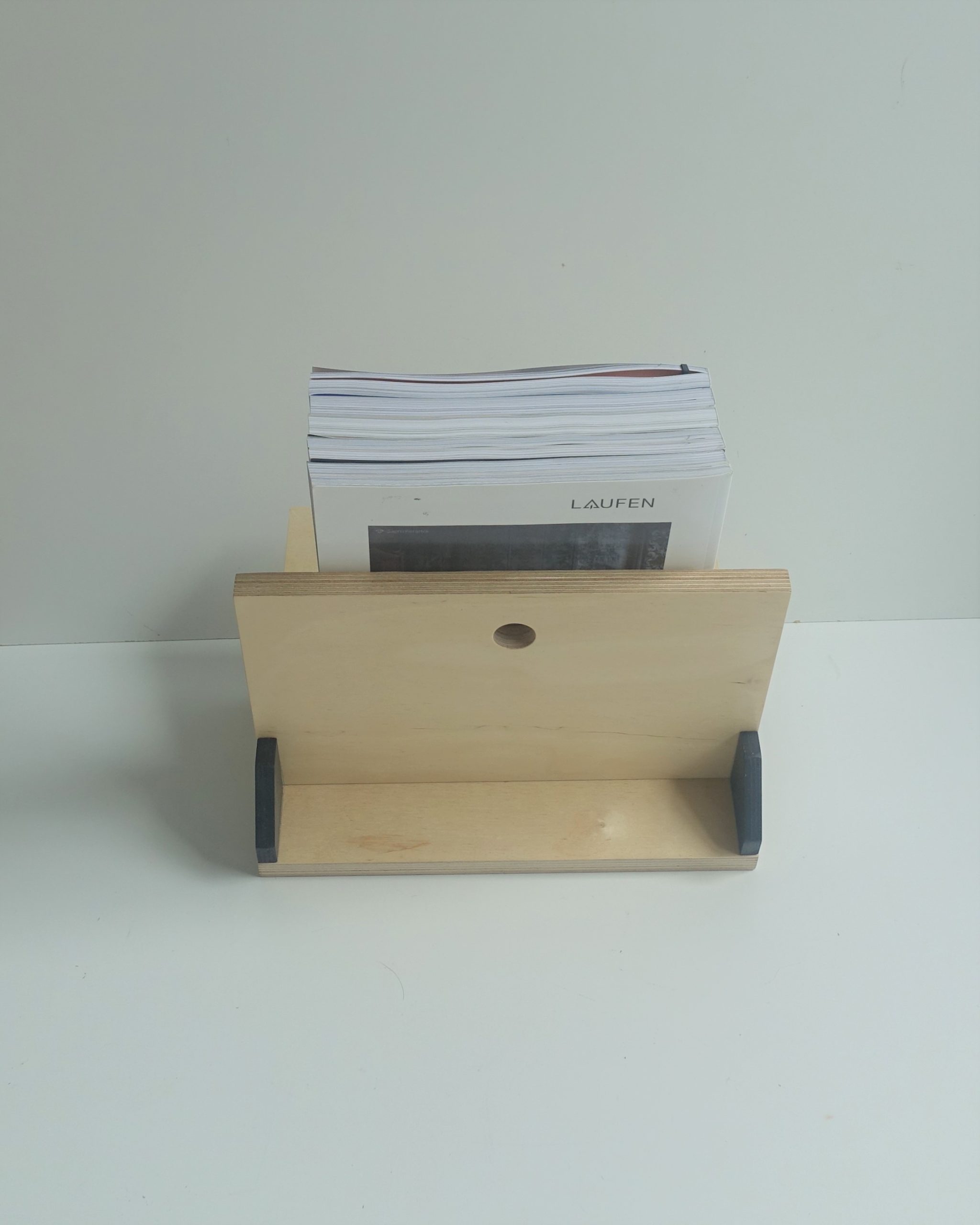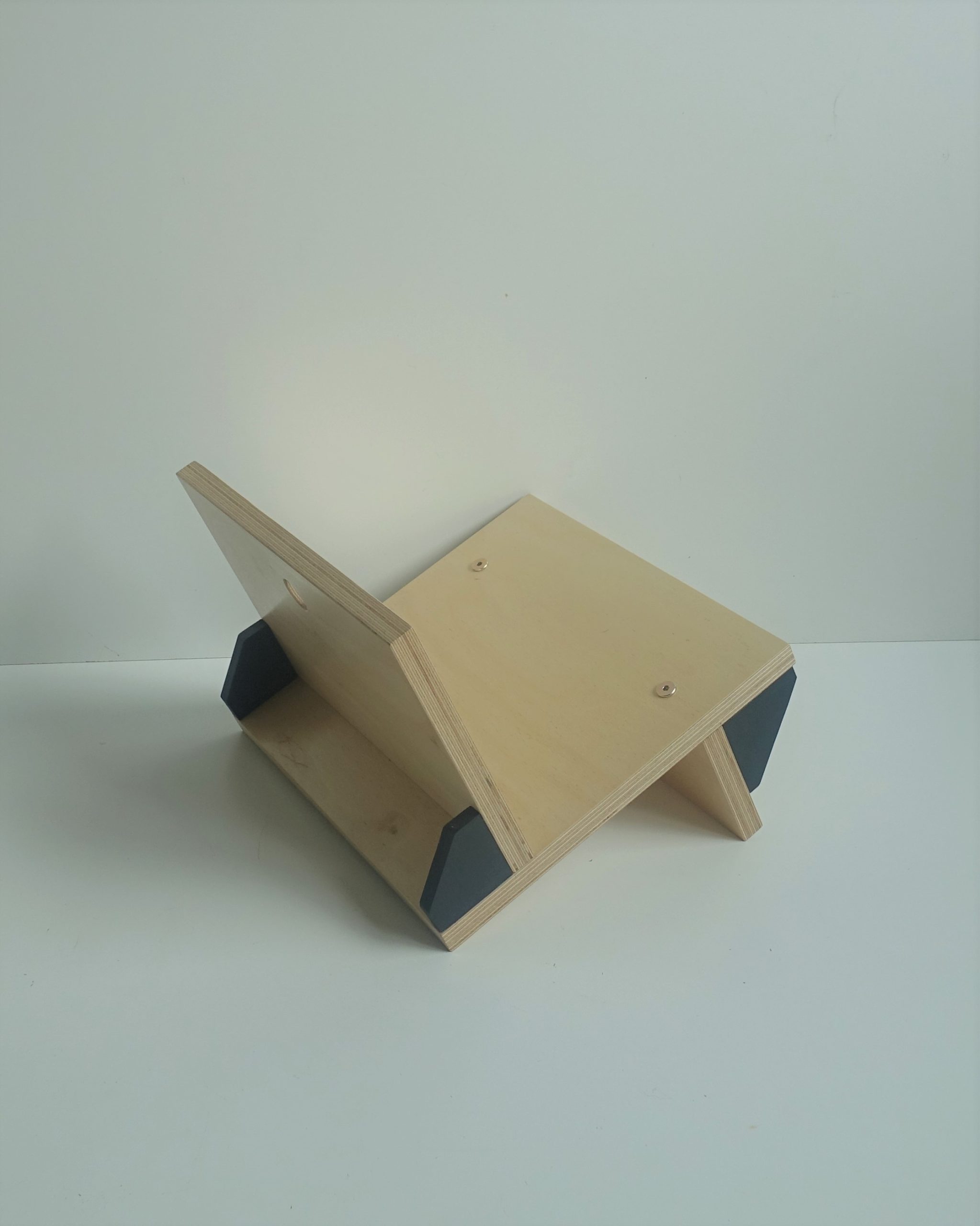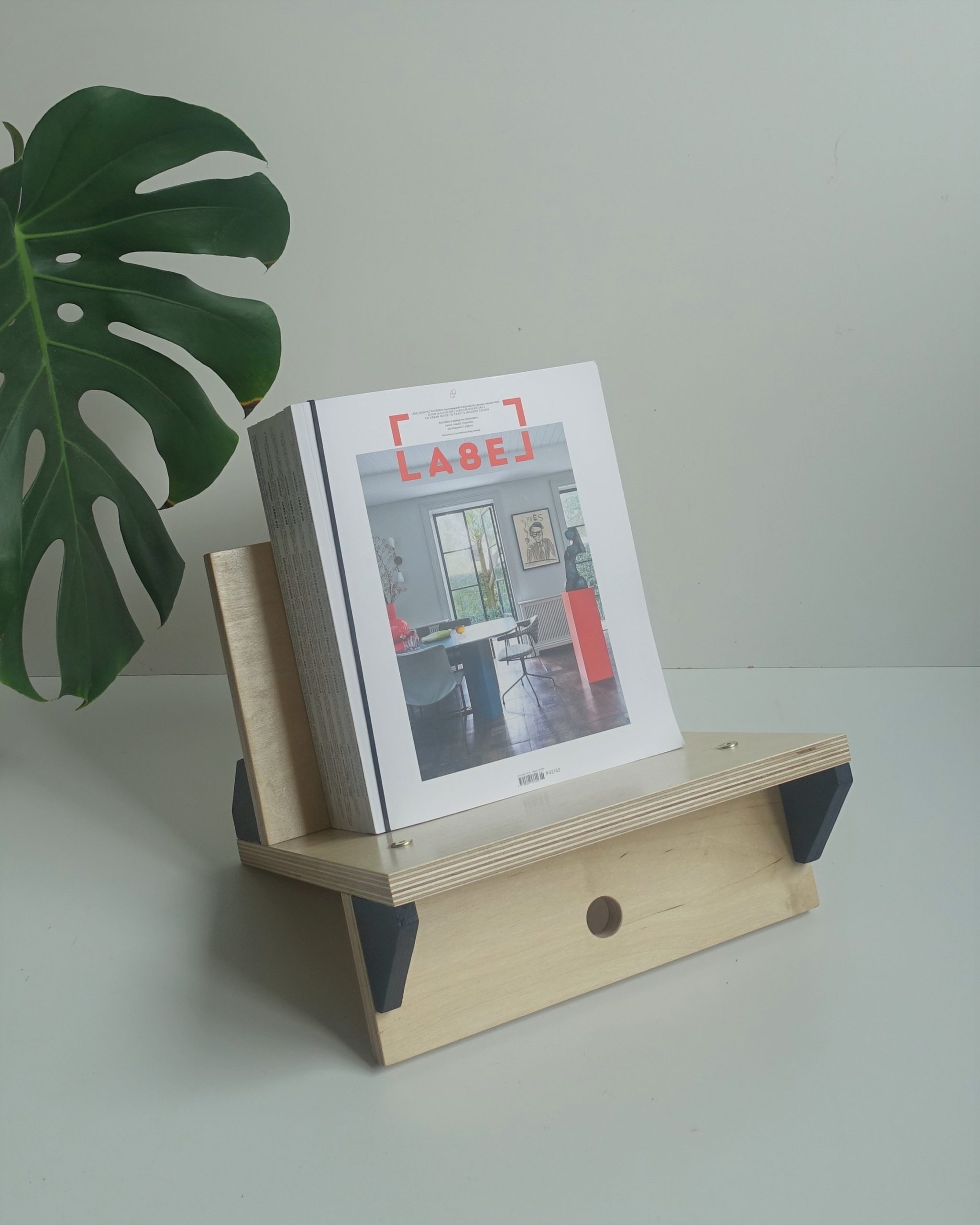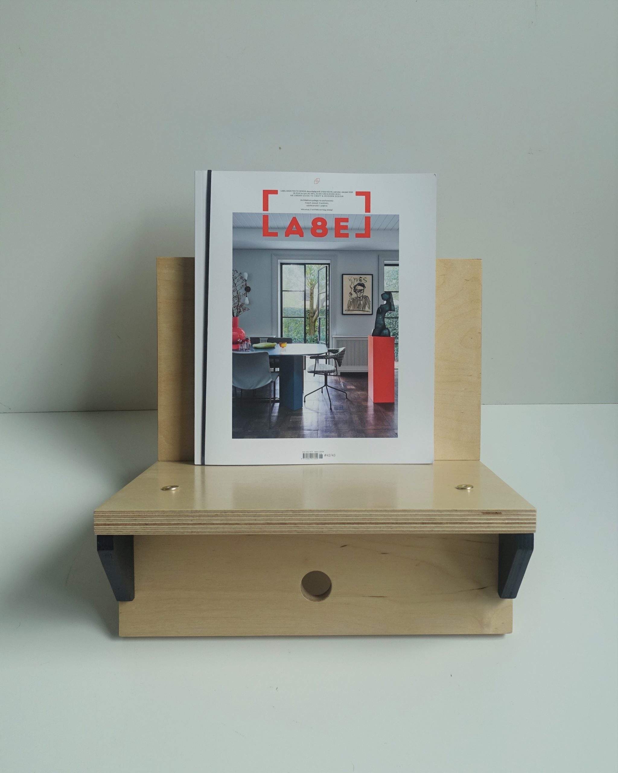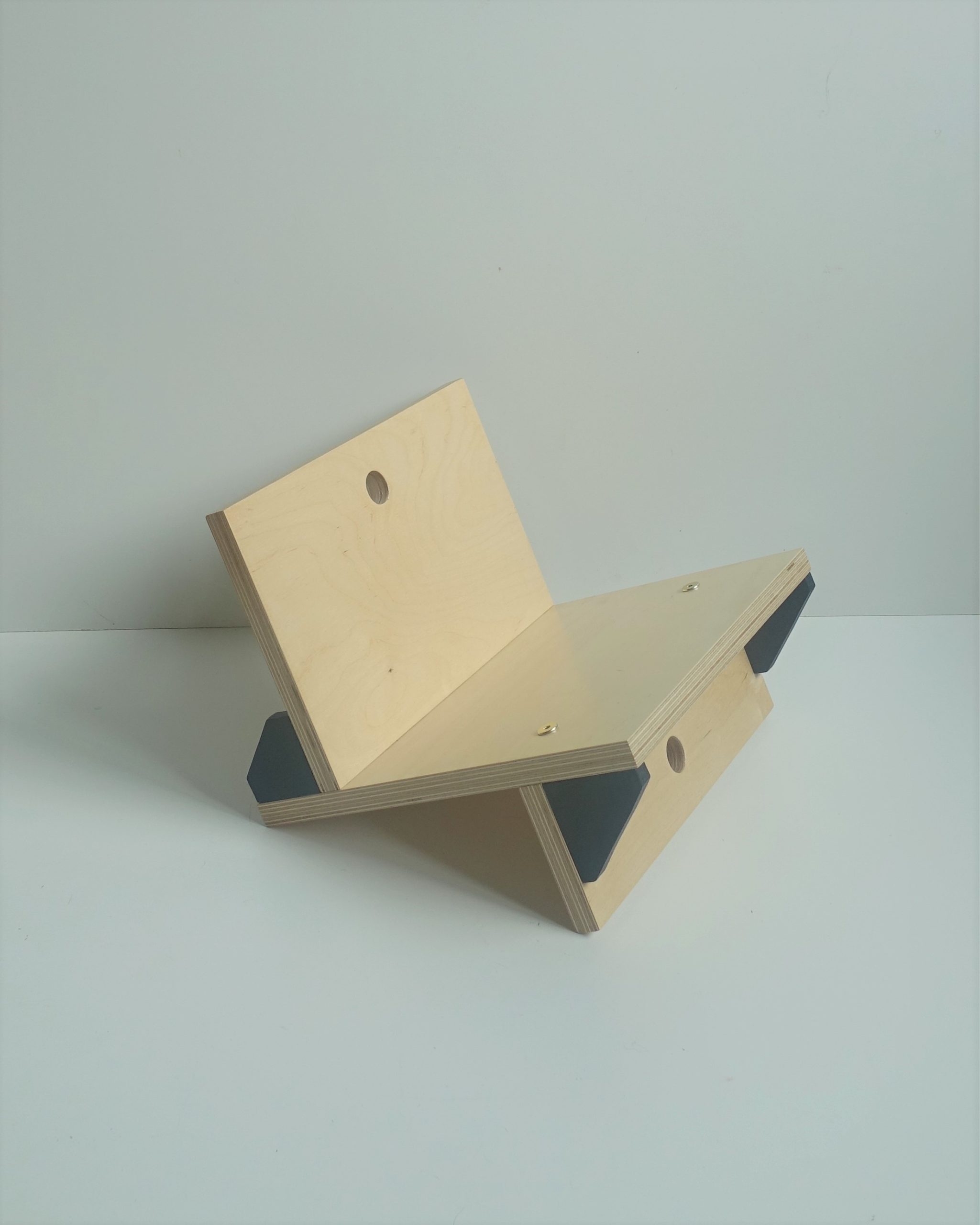 Stojak na winyle, gazety lub książki. Wiele funkcji, oryginalny design. Minimalizm. Idealnie wyważony, zmieści się na nim około 70 płyt. Stojak zrobiony jest ze sklejki grubości 18mm oraz 12mm. Wykończony wodnym, ekologicznym lakierem bezbarwnym oraz farbą wodną.
